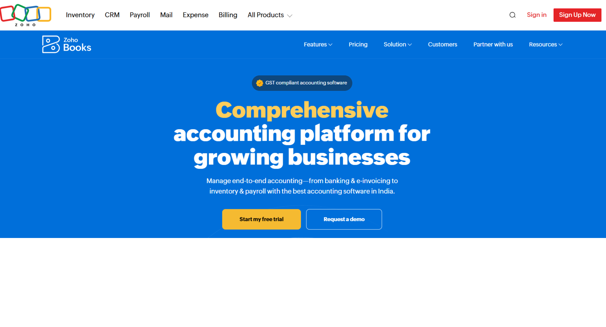 Zoho Books Indian SMBs & GST users Cloud-based GST invoicing, automation, bank reconciliation Country & revenue-based eligibility