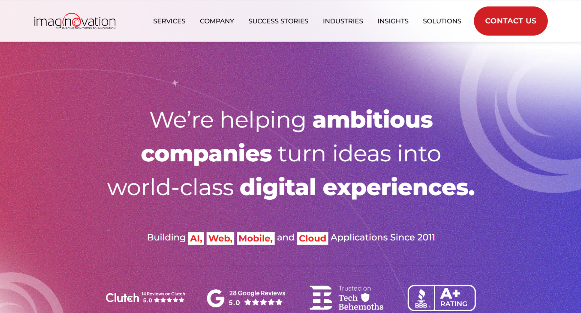 Imaginovation focuses on digital product engineering and scalable web applications. Their development process includes discovery workshops, user experience mapping, backend planning, and post-launch optimization.