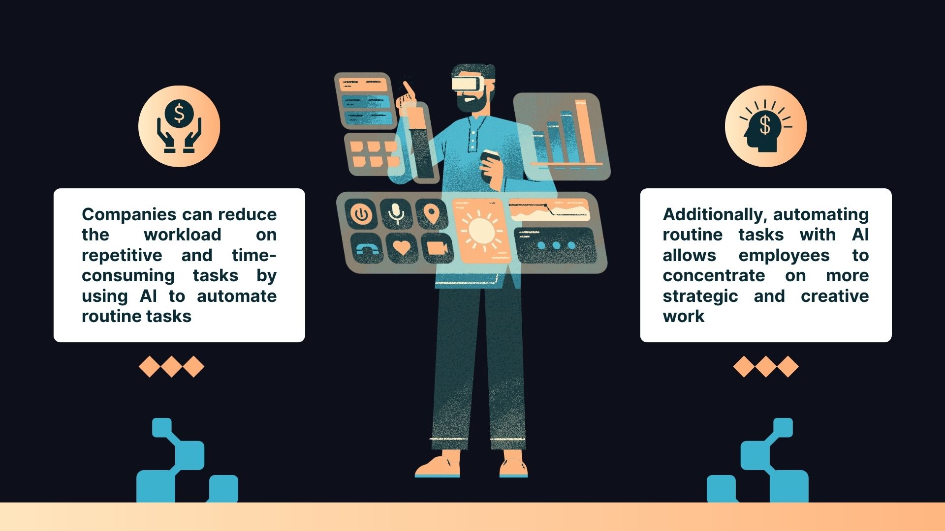 - Explanation: AI automation reduces the need for human agents in tasks like answering FAQs, processing transactions, or handling basic support.